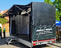 Unsere mobile Bühne inklusiv Licht-, Bild- und Tontechnik